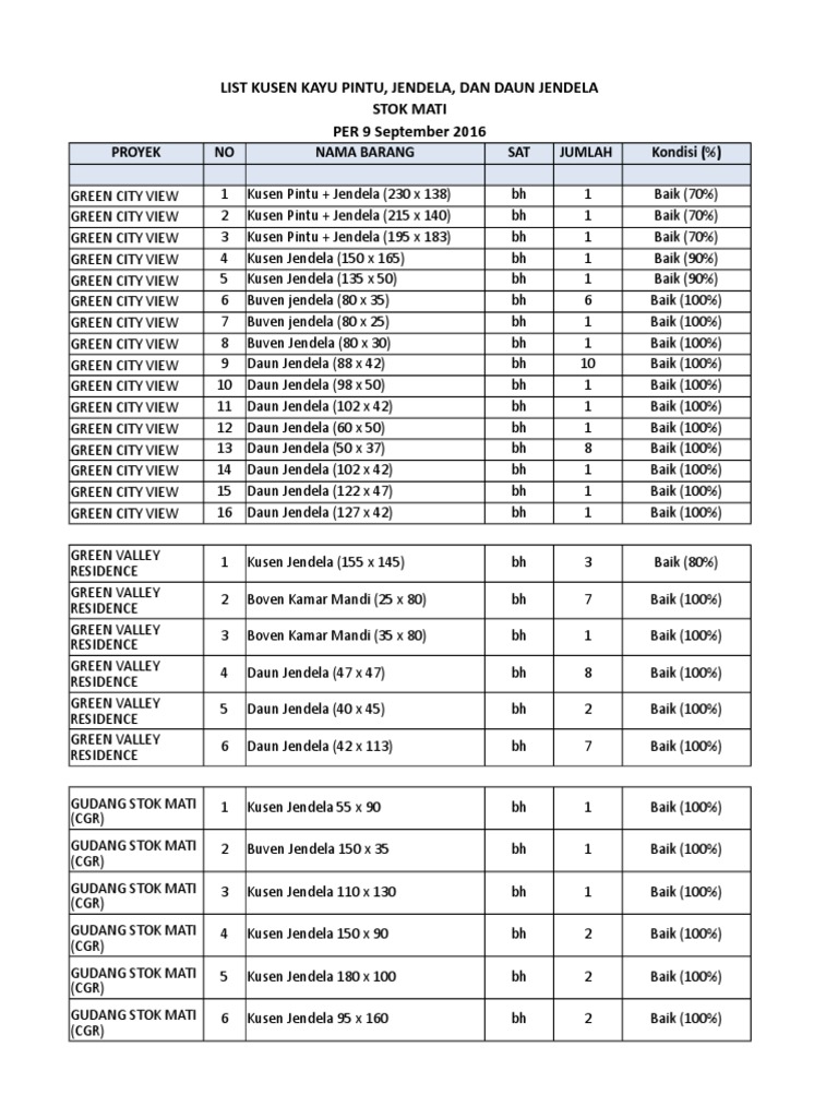 List Stok Mati Kusen Kayu 26 April 2017